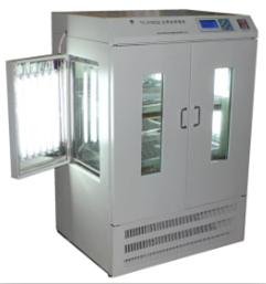 光照恒温摇瓶柜由箱内温度传感器所感受到的实际温度转换成电信号,经微电脑来控制加热或制冷压缩机工作,达到所需温度。有时控器来控制光照量从而达到恒温、光照试验之目的。